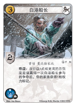 :在你以4点或更高的总强度差值赢得一次白港船长参与的争夺后,你的家族获得1枚权力标记。