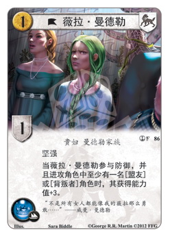 当薇拉·曼德勒参与防御,并且进攻角色中至少有一名[盟友]或[背叛者]角色时,其获得能力值+3。