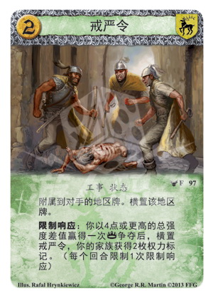 争夺后,横置戒严令,你的家族获得2枚权力标记。(每个回合限制1次限制响应)