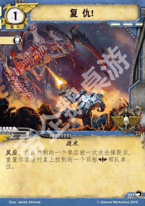 文本反应:在你控制的一个单位被一次攻击摧毁后,重置你在该行星上控制的一个目标星际战士部队单位。